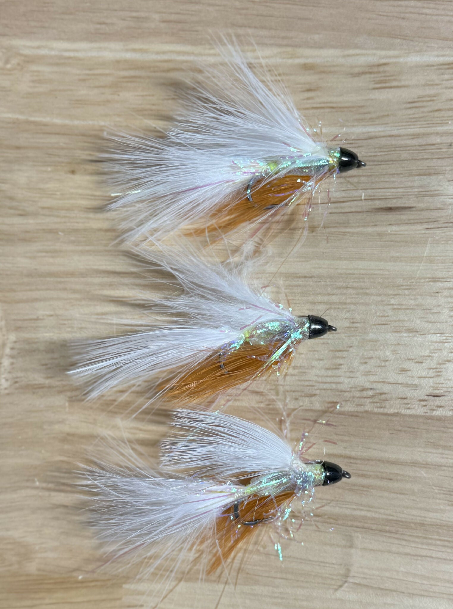 One of the best smallmouth patterns out there! Scotty's McFly tied on a size 2 Mustad hook in orange and white pattern. Comes in pack of 3.